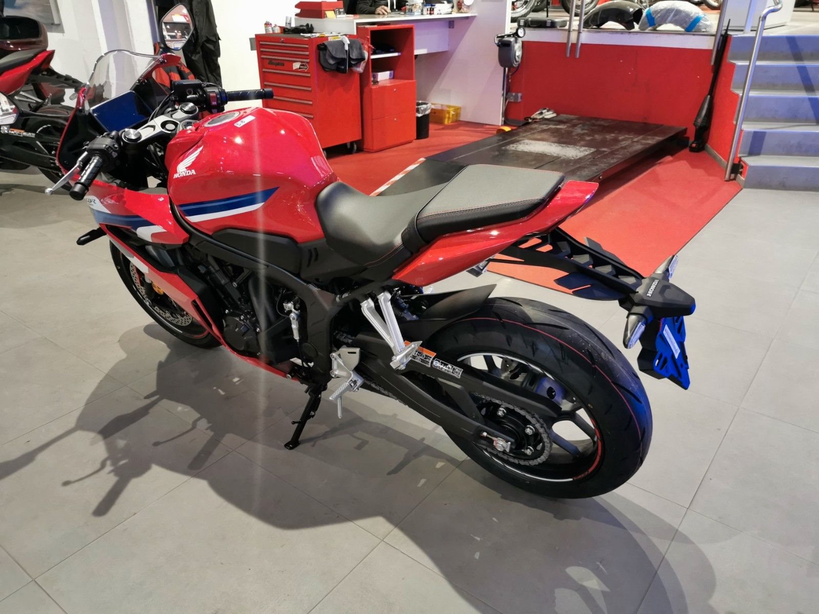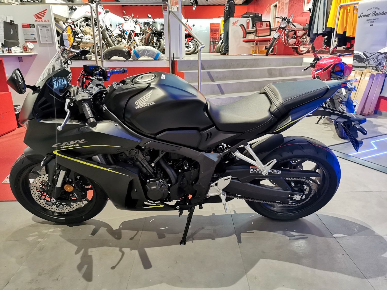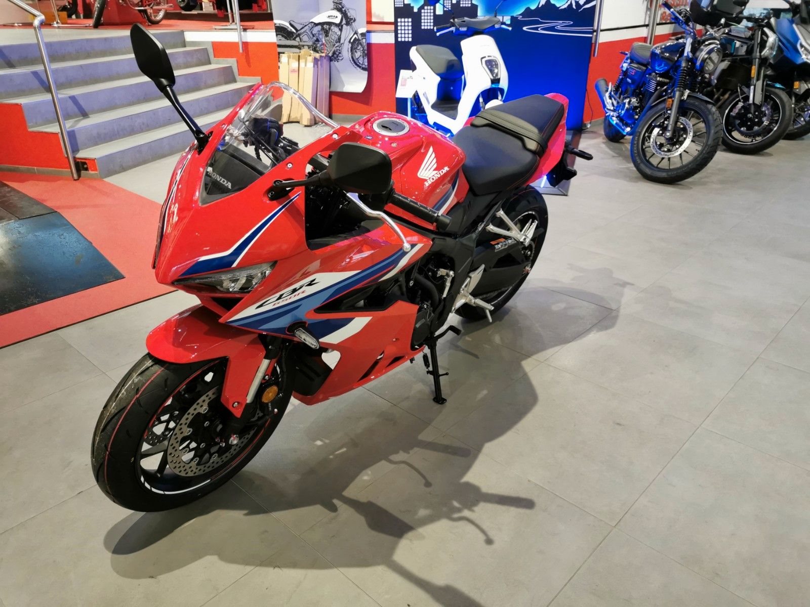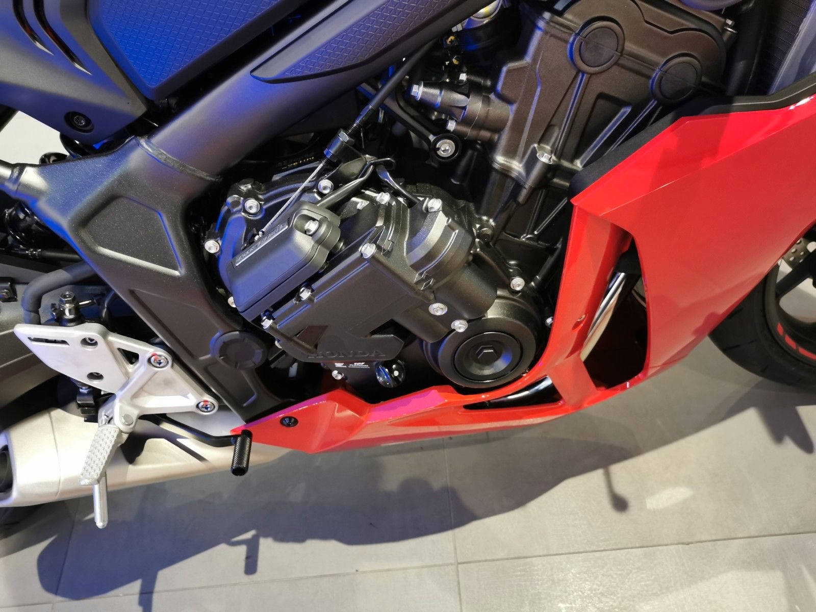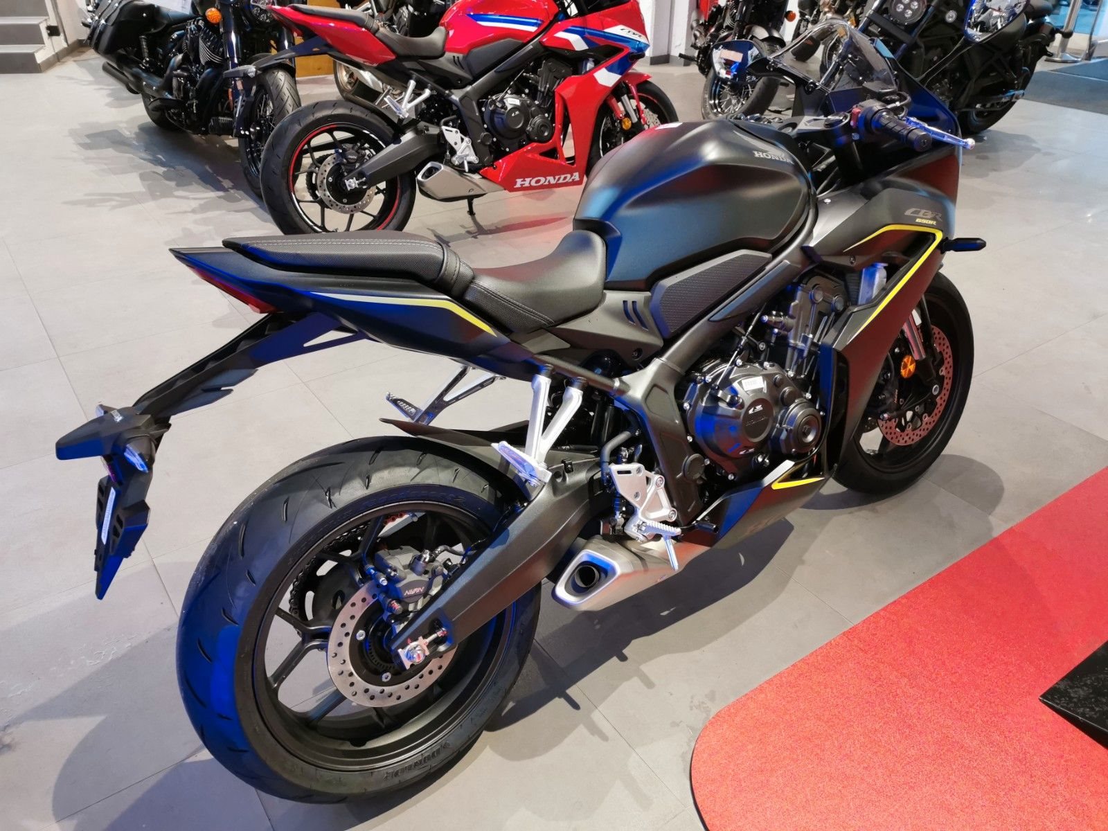 Mittelklasse-Sportmotorräder mit Vierzylindermotor CBR650R. CBR650R Vierzylinder-Performance pur Mittelklasse-Sportmotorräder mit Vierzylindermotor sind rare Kostbarkeiten. Auf Wunsch übernimmt die elektronische Steuerung das Kuppeln. Das aggressive neue Design orientiert sich an der Fireblade. Zur hochwertigen Ausstattung dieses Juwels unter den Sportmotorrädern gehören das neue TFT-Farbdisplay und Konnektivität per Honda RoadSync.