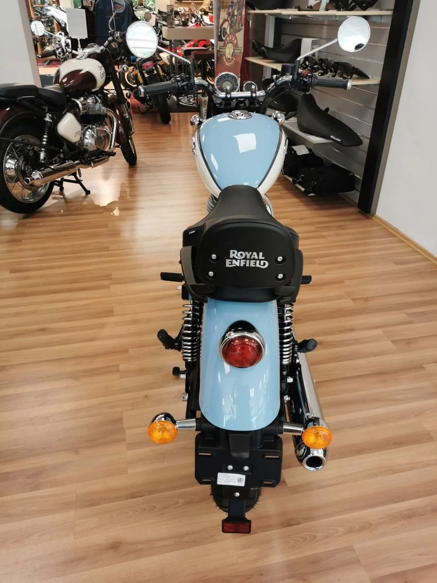 Die Meteor 350 tritt mit ihrem Namen das Erbe einer Royal Enfield Ikone aus den 1950er-Jahren an. Die Ende 1952 auf den Markt gebrachte Meteor war ein hochgelobtes Tourenmotorrad, das seinen guten Ruf über viele Jahre hinweg erworben hat. Der neue Easy Cruiser Royal Enfield Meteor 350 überträgt die typischen Merkmale der Marke mit vielen Neuerungen in die heutige Zeit und wird so dem hervorragenden Ruf seines Vorgängers bestens gerecht. Inkl. Turn By Turn Navigation.