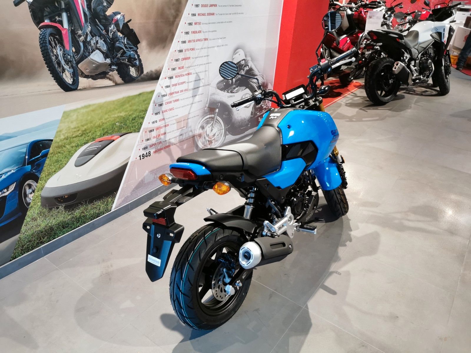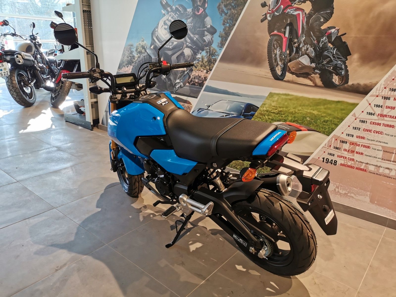 Soviel ist klar: Du musst irgendwo sein. Und so fängt deine Reise an. Schon seit 2013 ist die MSX125 Grom das beliebteste Fortbewegungsmittel einer ganz neuen Generation junger Fahrer. Das ist auch kein Wunder: Sie überzeugt durch individuelle Optik, kompakte Abmessungen sowie die motorradtypische Leistung, Federung und Bremsen. Mit ihrem dynamischen luftgekühlten 125-cm-Motor, dem 5-Gang-Getriebe, der neuen Lackierung in leuchtenden Farben und der eleganten Unterverkleidung ist die ultrakompakte Grom ein perfekte Begleiter durch das urbane Leben.